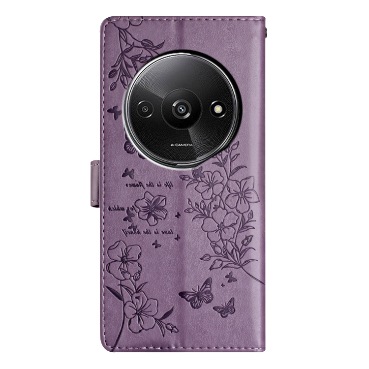 Funda de Cuero con Mariposas y Flores para Redmi A3 (Morado)