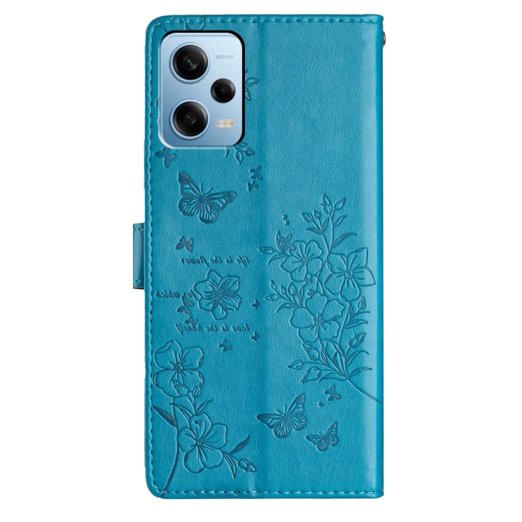 Funda de Cuero con Diseño de Mariposas y Flores para Redmi Note 12 4G Global (Azul)