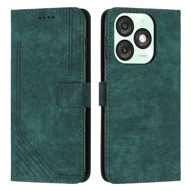 Funda de Cuero para Itel A50 con Diseño de Rayas y Cordón (Verde)
