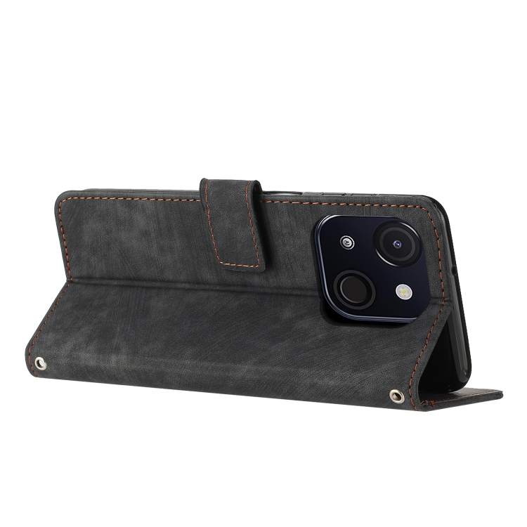 Funda de Cuero Itel A50C con Diseño de Rayas y Cordón (Negro)