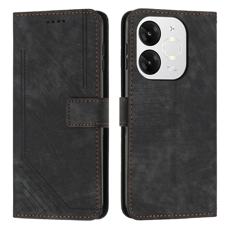 Funda de Cuero Itel A80 con Diseño de Rayas y Cordón (Negro)
