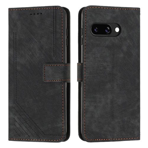 Funda de Cuero para Google Pixel 9A con Diseño de Rayas y Cordón Largo (Negro)