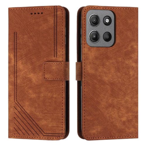 Funda de Cuero para Motorola Moto G15 con Diseño de Rayas y Cordón (Marrón)