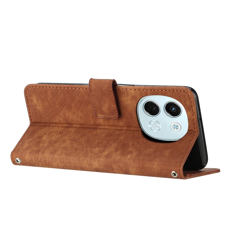 Funda de Cuero para Tecno Spark 30 5G con Diseño de Rayas y Cordón Largo (Marrón)
