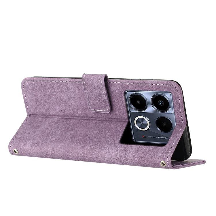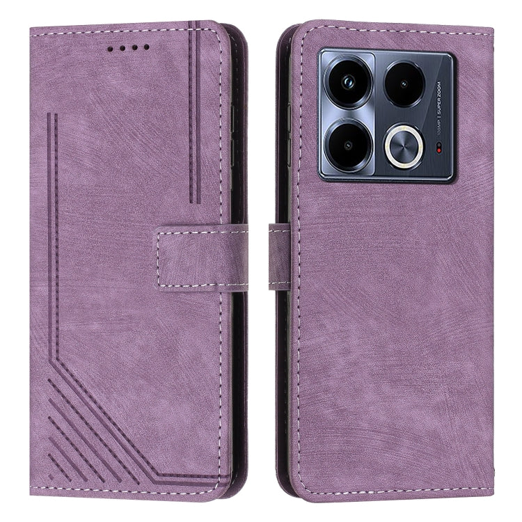 Funda de Cuero para Infinix Note 40 5G con Diseño de Rayas y Cordón (Morado)