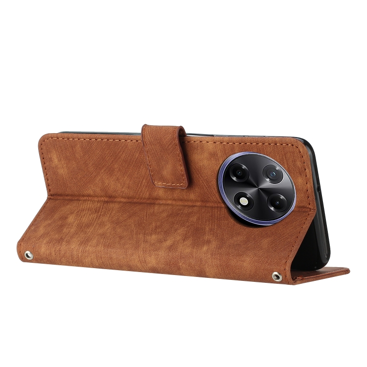 Funda de Cuero para Tecno Camon 30S con Diseño de Rayas y Cordón Largo (Marrón)