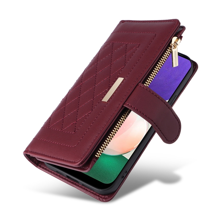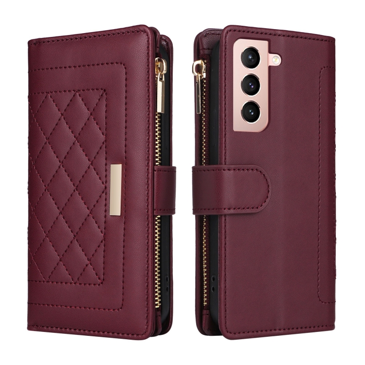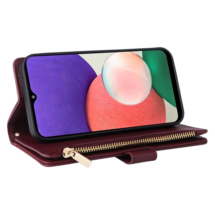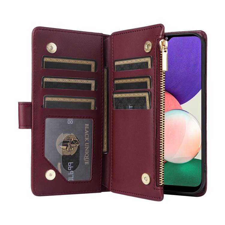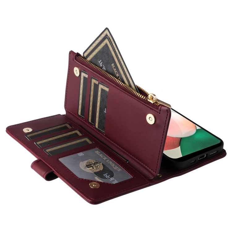 Funda Cuero Samsung Galaxy S22+ 5G Billetera Cruzada Cremallera (Rojo Vino)