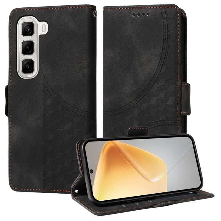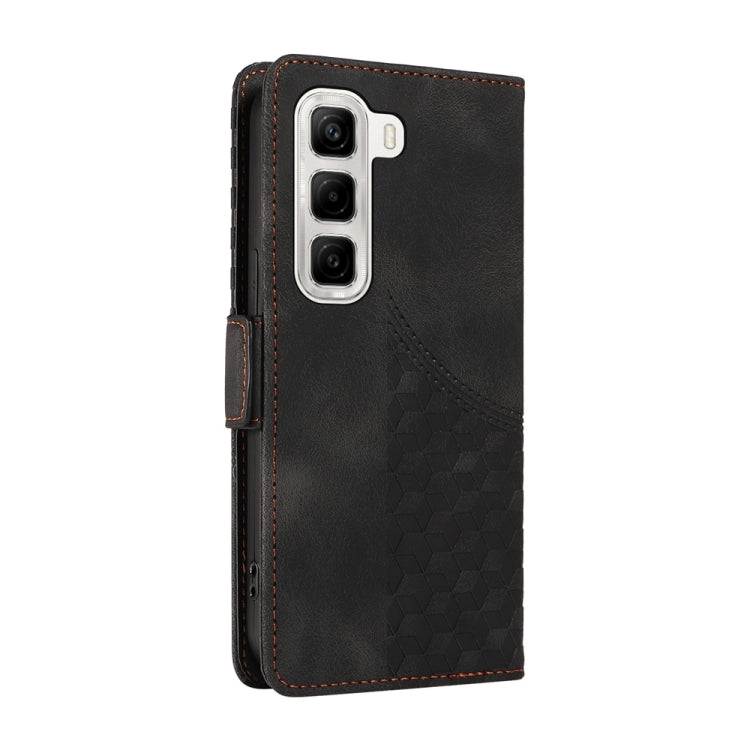 Funda de Cuero para Infinix Hot 50 4G con Diseño de Rombos y Estrellas en Relieve (Negra)