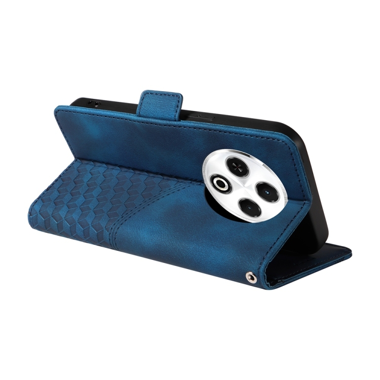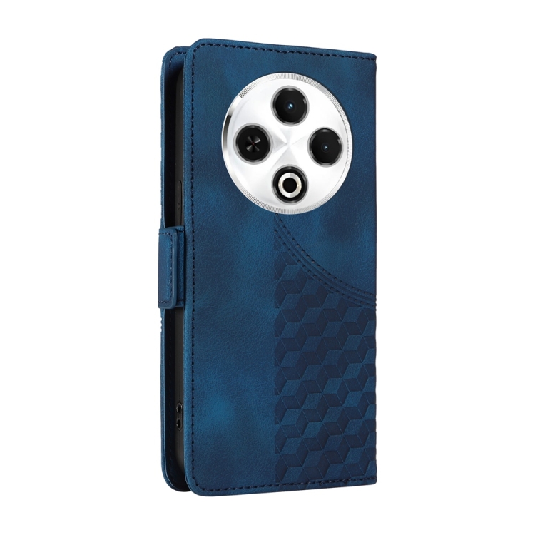 Funda de Cuero para Tecno Spark 30 4G con Diseño de Rombos y Estrellas en Relieve (Azul)