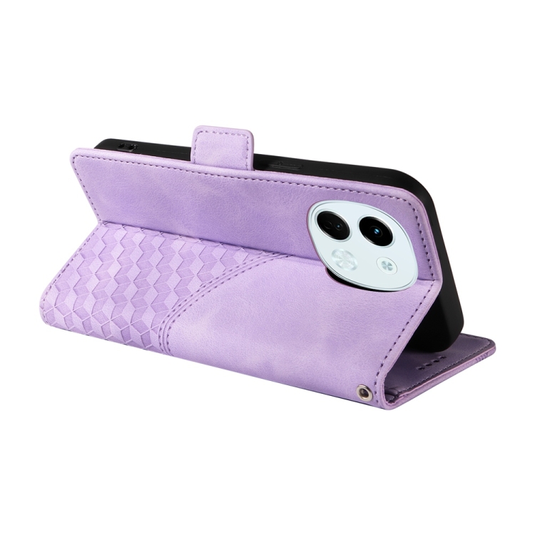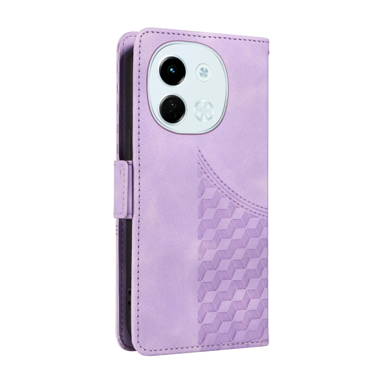 Funda de Cuero para Tecno Spark 30 5G y Pova 6 Neo 5G con Diseño de Rombos y Estrellas en Relieve (Morado)