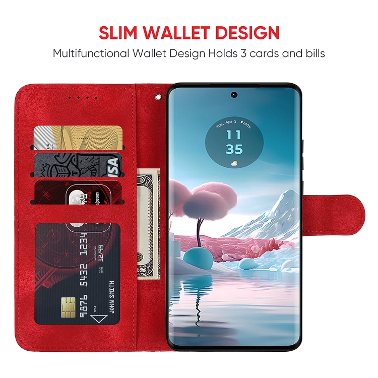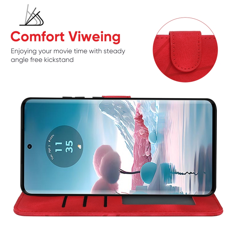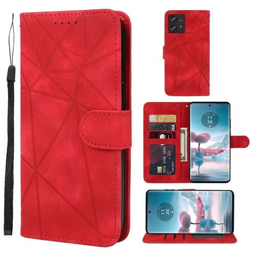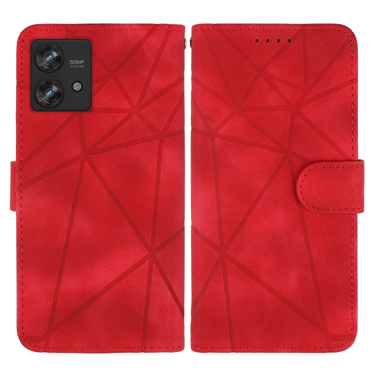 Funda de Cuero con Diseño Geométrico y Líneas para Motorola Edge 40 Neo Skin Feel (Rojo)