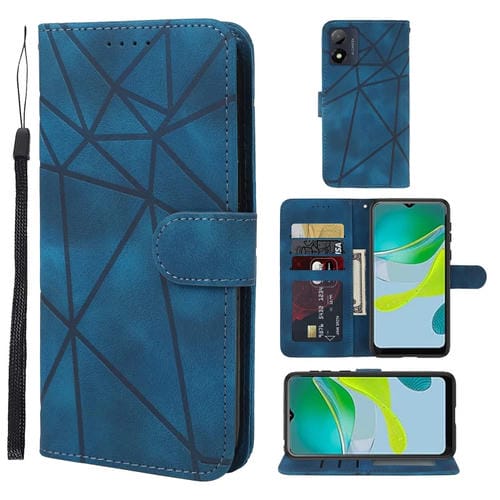 Funda de Cuero Motorola Moto E13 con Diseño Geométrico y Líneas (Azul)