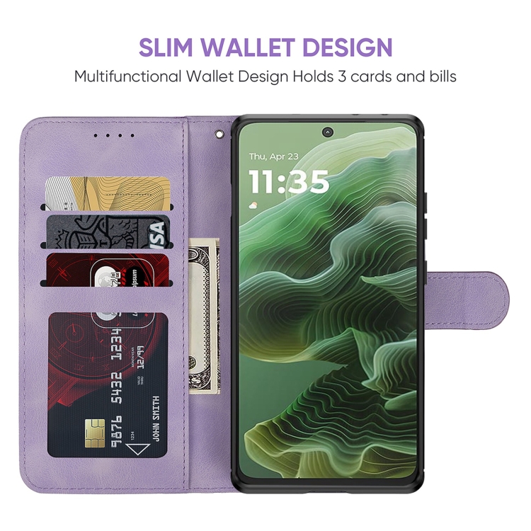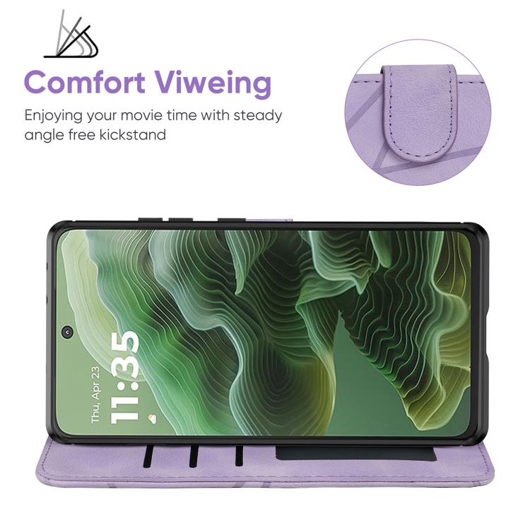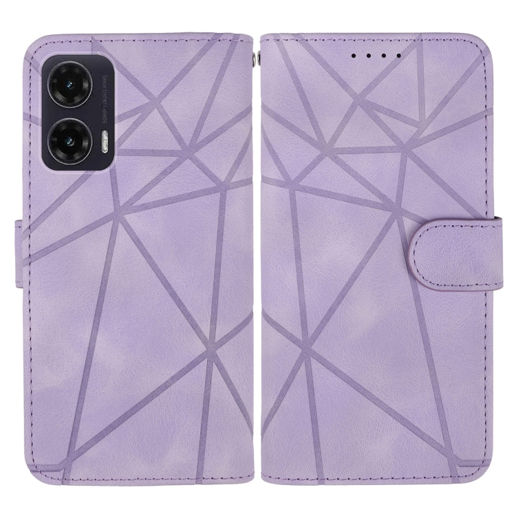 Funda de Cuero Motorola Moto G35 con Diseño Geométrico y Líneas (Morado)