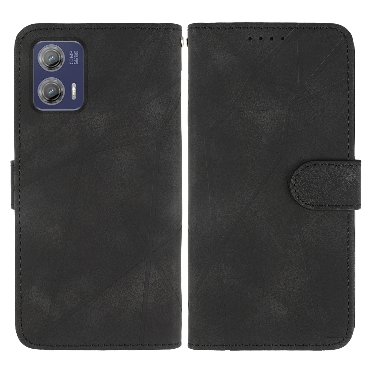 Funda de Cuero para Motorola Moto G73 con Diseño Geométrico y Líneas (Negro)
