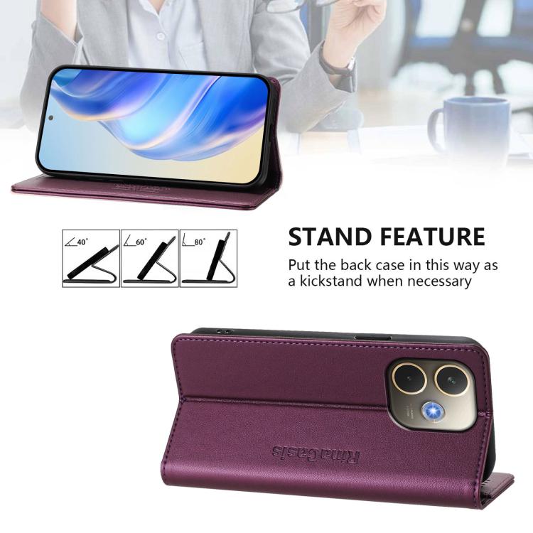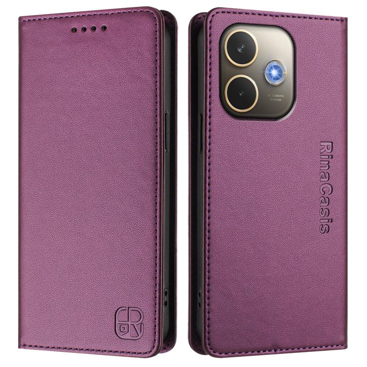 Funda de Cuero con Doble Pliegue y Cierre Magnético Rfid para Oppo A5 Pro 5G Global Rc01 (Violeta)