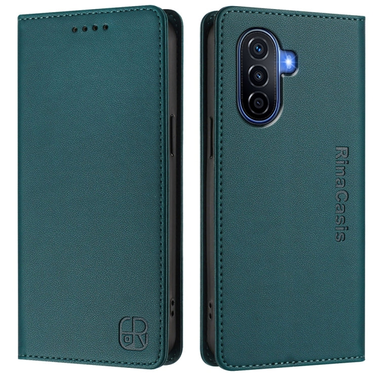 Funda de Cuero Huawei Enjoy 50 Nova Y70 Plus Rc01 Doble Pliegue Succión Magnética (Verde Oscuro)
