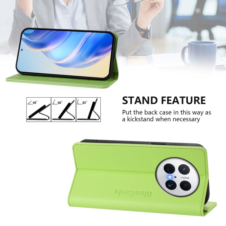 Funda de Cuero con Doble Pliegue y Succión Magnética para Huawei Mate 70 Pro Rc01 (Verde Hierba)