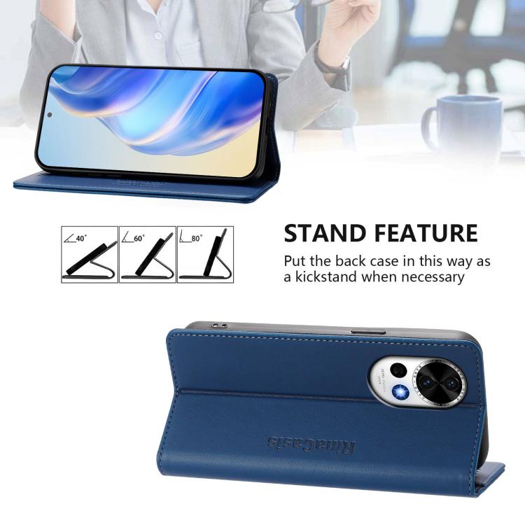 Funda de Cuero con Doble Pliegue y Succión Magnética para Huawei Nova 13/Nova 12 Rc01 (Azul Oscuro)