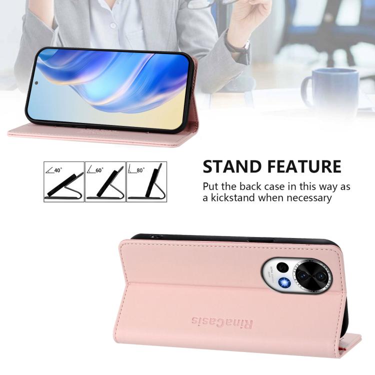 Funda de Cuero con Doble Pliegue y Succión Magnética para Huawei Nova 13/Nova 12 Rc01 (Rosa)