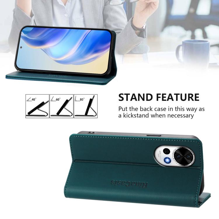 Funda de Cuero con Doble Pliegue y Succión Magnética para Huawei Nova 13/Nova 12 Rc01 (Verde Oscuro)