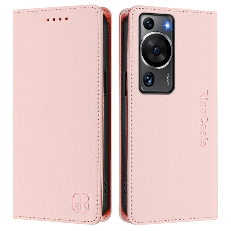 Funda de Cuero con Doble Pliegue y Succión Magnética para Huawei P60/P60 Pro Rc01 (Rosa)