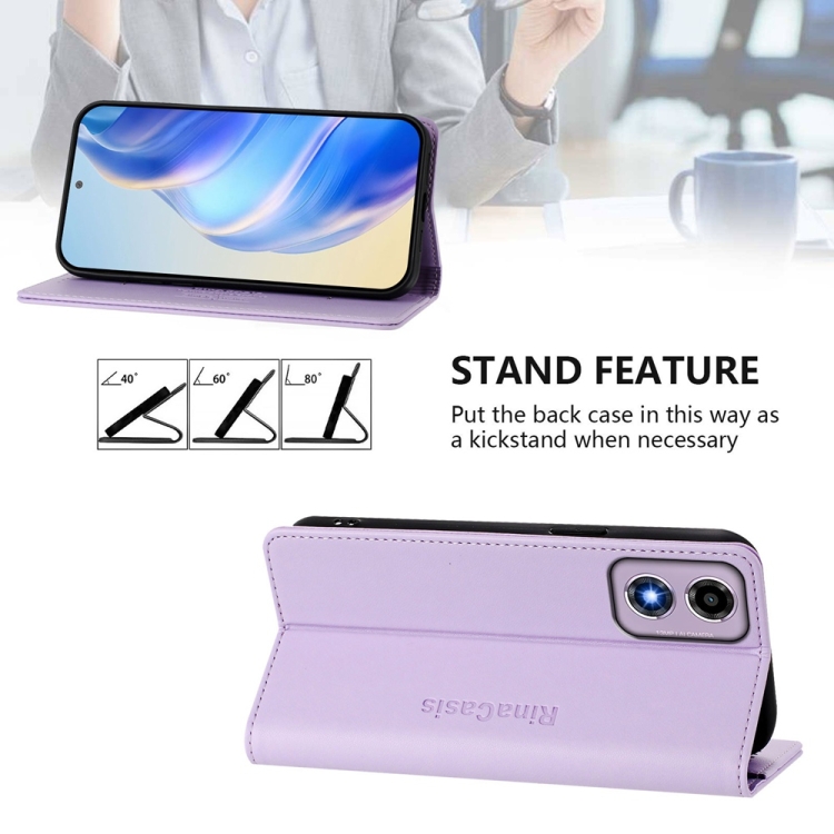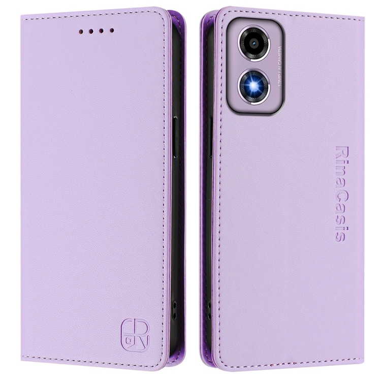 Funda de Cuero Motorola Moto E14/G24/G04/G04S Rc01 con Doble Pliegue y Succión Magnética (Morado Claro)