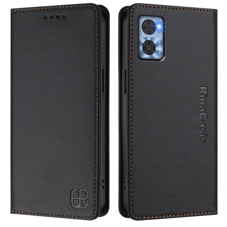 Funda de Cuero con Doble Pliegue y Succión Magnética para Motorola Moto E22 / Moto E22I Rc01 (Negra)
