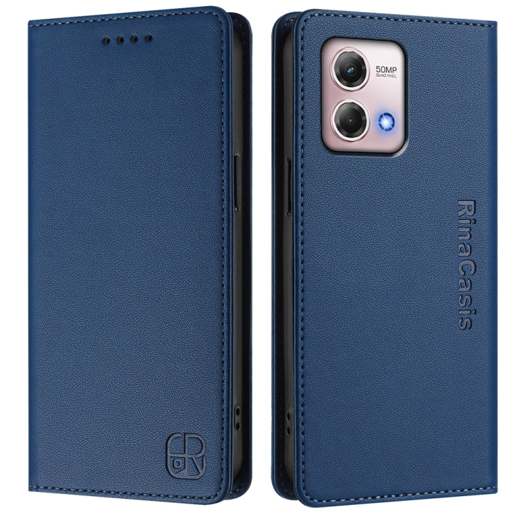 Funda de Cuero con Doble Pliegue y Succión Magnética para Motorola Moto G Stylus 4G (2023) (Azul Oscuro)