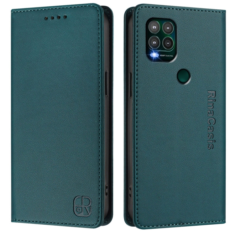 Funda de Cuero Motorola Moto G Stylus 5G 2021 Rc01 con Doble Pliegue y Succión Magnética (Verde Oscuro)