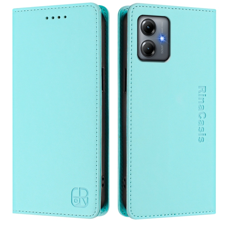 Funda de Cuero para Motorola Moto G14/G54 Rc01 con Doble Pliegue y Succión Magnética (Verde Menta)