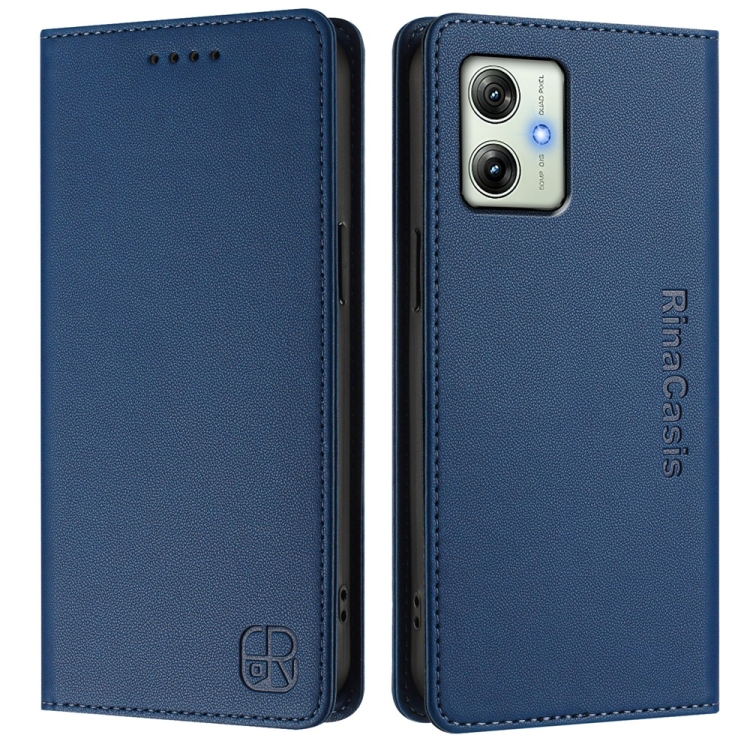 Funda de Cuero con Doble Pliegue y Succión Magnética para Motorola Moto G64 5G / G54 / G54 Power Rc01 (Azul Oscuro)