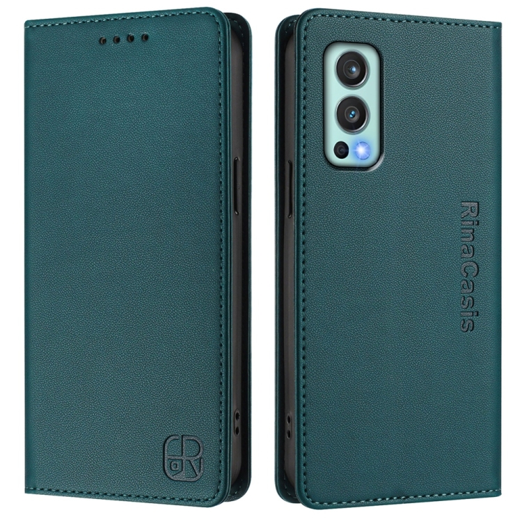 Funda de Cuero con Doble Pliegue y Succión Magnética para OnePlus Nord 2 5G Rc01 (Verde Oscuro)