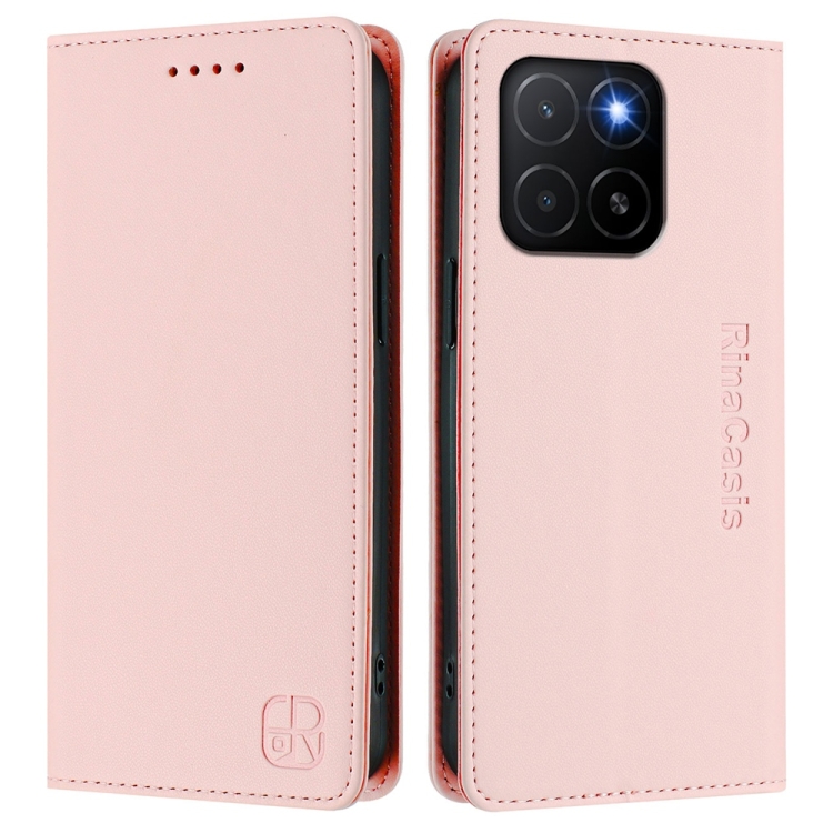 Funda de Cuero con Doble Pliegue y Succión Magnética Rfid para Honor X5B / X5B Plus Global Rc01 (Rosa)