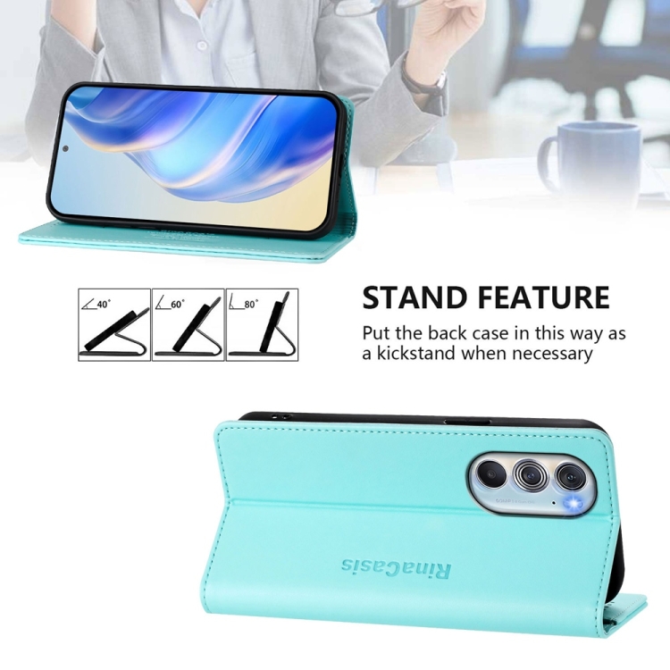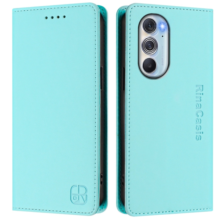 Funda de Cuero Motorola Edge 30 Pro Edge X30 Rc01 Doble Pliegue Succión Magnética (Verde Menta)