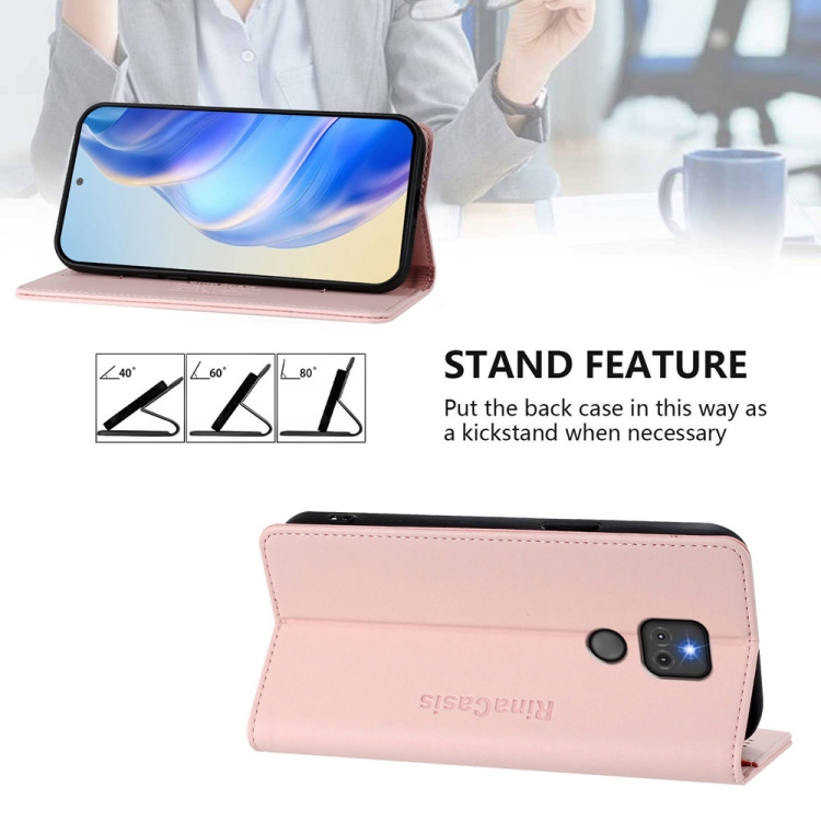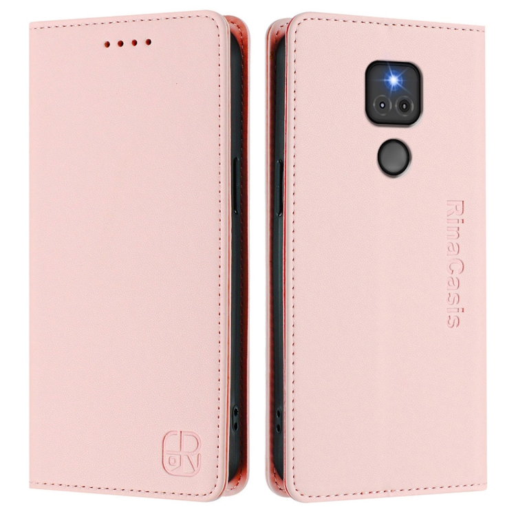 Funda de Cuero Motorola Moto G Play 2021 Rc01 con Doble Pliegue y Succión Magnética (Rosa)