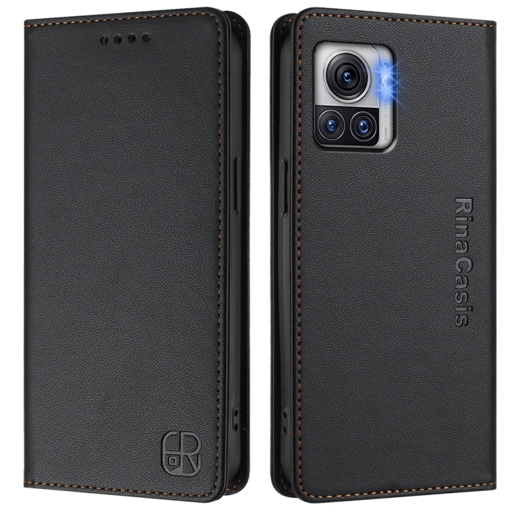 Funda de Cuero Motorola Moto X30 Pro Edge 30 Ultra Rc01 con Doble Pliegue y Succión Magnética (Negro)