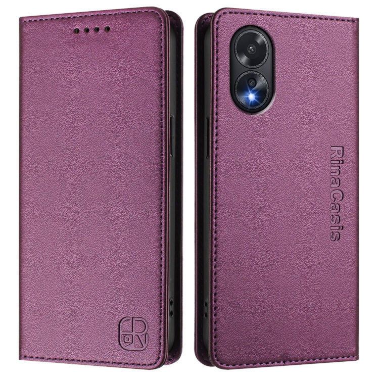 Funda de Cuero con Doble Pliegue y Cierre Magnético Rfid para Oppo A38 4G / A18 4G Global Rc01 (Violeta)