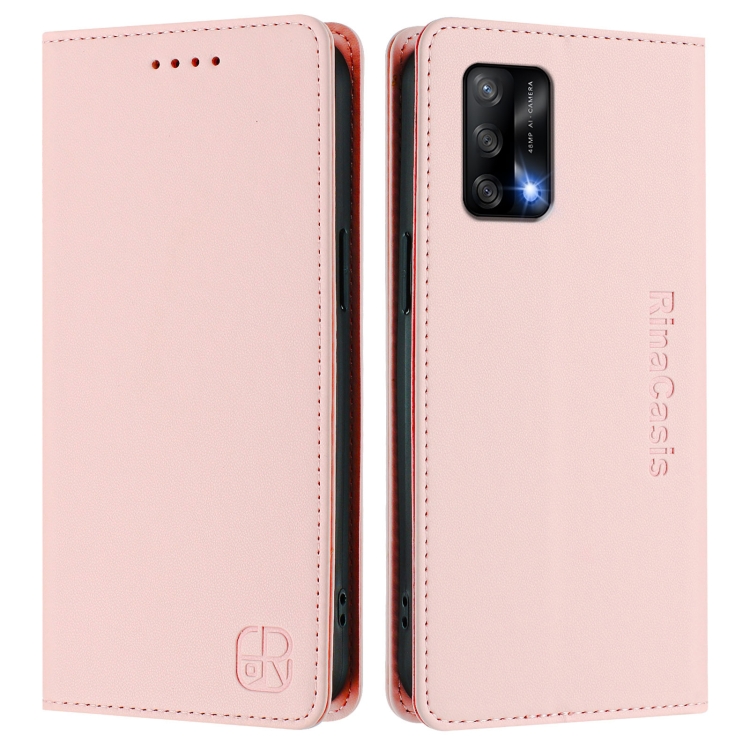 Funda de Cuero Rfid con Doble Pliegue y Succión Magnética para Oppo A74 4G / F19 / F19S / A95 5G / 4G Rc01 (Rosa)