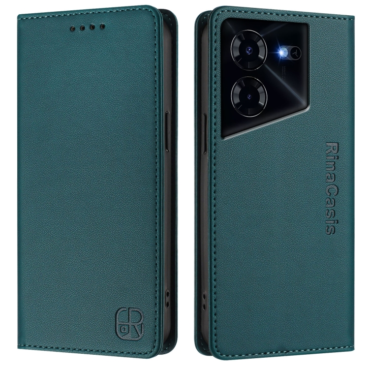 Funda de Cuero para Tecno Pova 5 Pro 5G Rc01 con Doble Pliegue y Succión Magnética Rfid (Verde Oscuro)