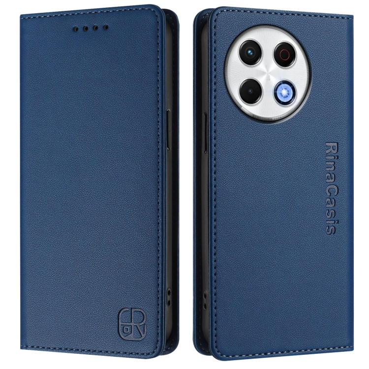 Funda de Cuero con Doble Pliegue y Succión Magnética Rfid para Tecno Spark 30 Pro 4G Rc01 (Azul Oscuro)