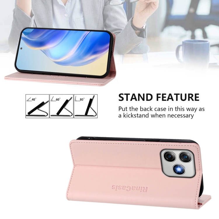 Funda de Cuero para Ulefone Note 18 Ultra 5G Rc01 con Doble Pliegue y Succión Magnética (Rosa)