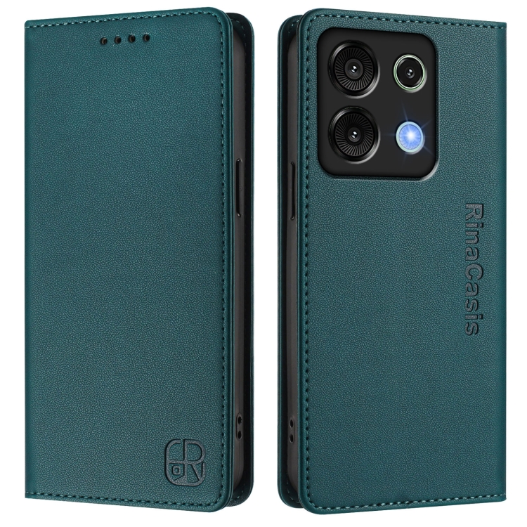 Funda de Cuero para Umidigi G9 5G Rc01 con Doble Pliegue y Succión Magnética (Verde Oscuro)