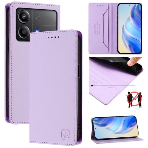 Funda de Cuero con Doble Pliegue y Succión Magnética para Teléfono Xiaomi Poco X6 Neo 5G Rc01 (Morado Claro)