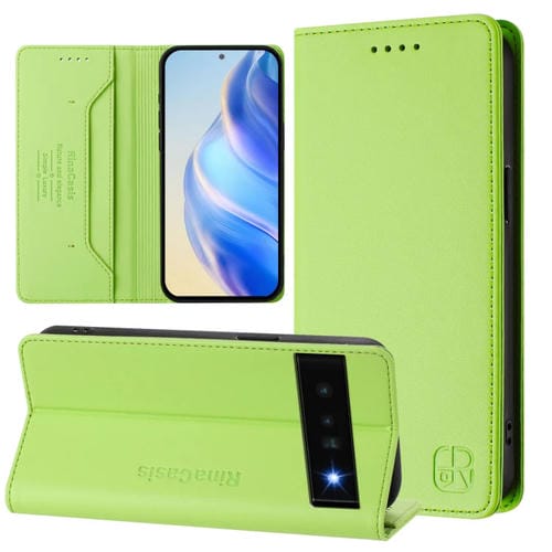 Funda de Cuero con Doble Pliegue y Succión Magnética RFID para Google Pixel 6 Pro Rc01 (Verde Hierba)