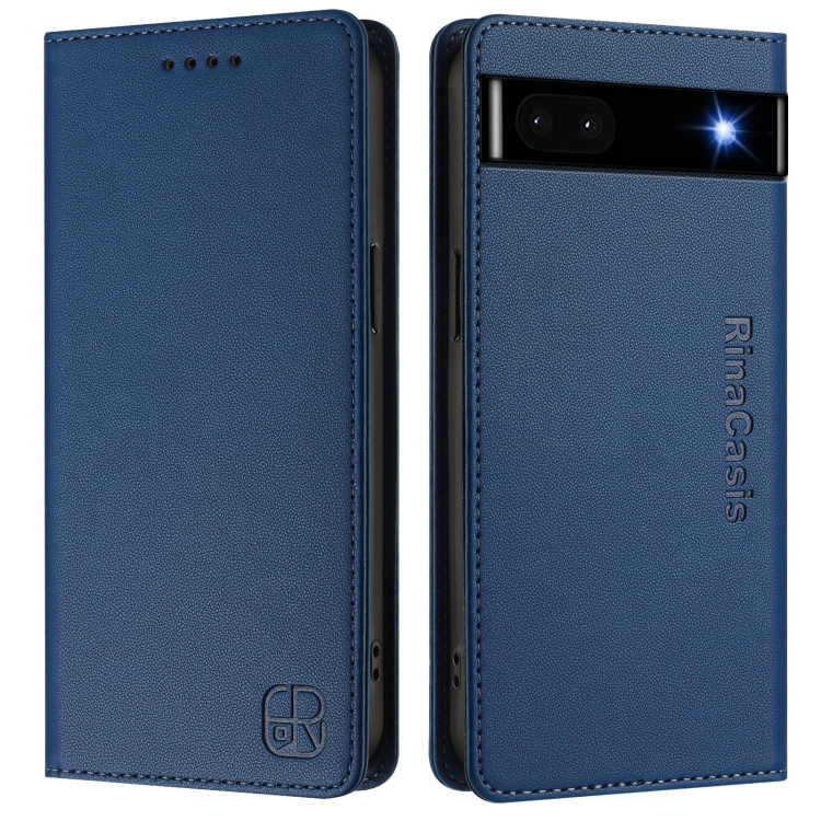 Funda de Cuero con Doble Pliegue y Succión Magnética RFID para Google Pixel 6A Rc01 (Azul Oscuro)