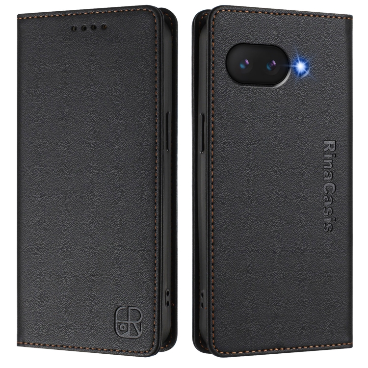 Funda de Cuero con Doble Pliegue y Succión Magnética RFID para Google Pixel 9A Rc01 (Negra)