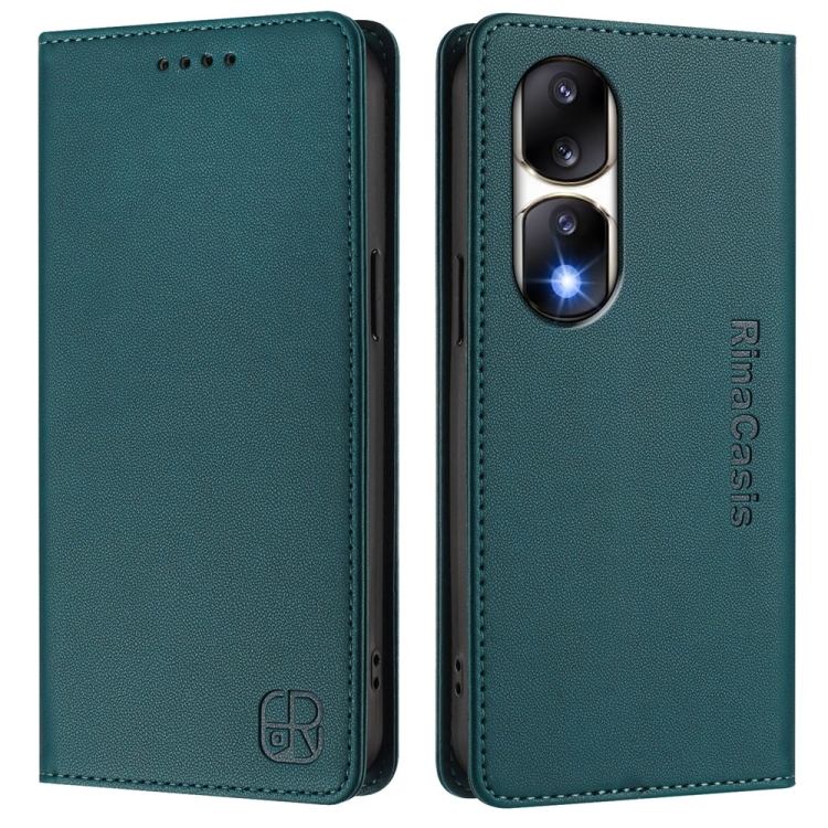 Funda de Cuero para Honor 90 Pro Rc01 con Doble Pliegue y Succión Magnética Rfid (Verde Oscuro)