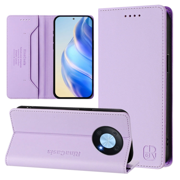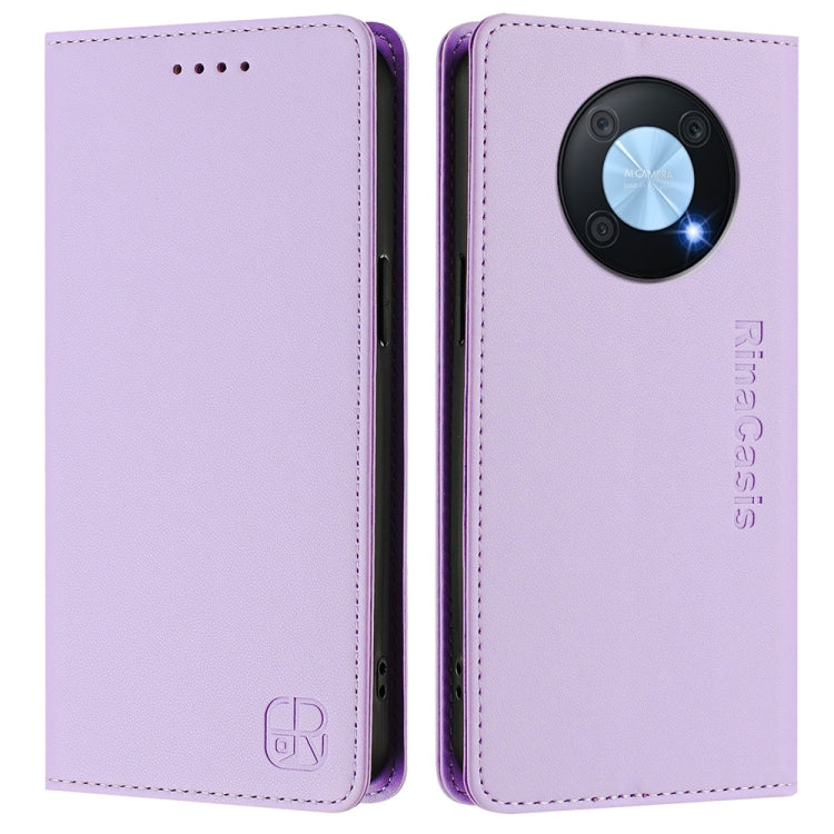 Funda de Cuero Huawei Enjoy 50 Pro Nova Y90 Rc01 con Doble Pliegue Succión Magnética Rfid (Morado Claro)