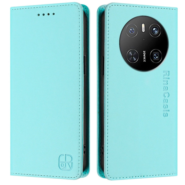 Funda de Cuero con Doble Pliegue y Succión Magnética Rfid para Huawei Mate 70 Rc01 (Verde Menta)