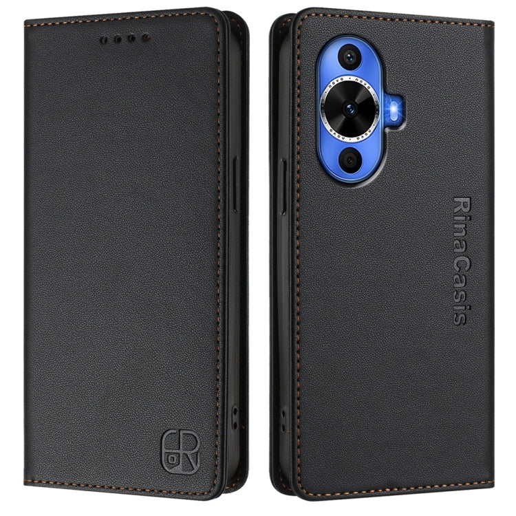 Funda de Cuero con Doble Pliegue y Succión Magnética Rfid para Huawei Nova 12S Global Rc01 (Negra)